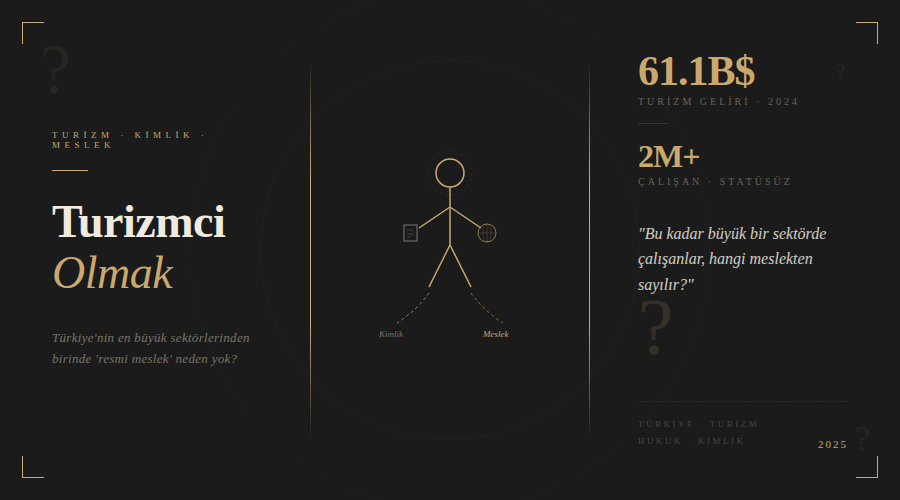Cevap hem basit hem de tuhaf: ‘Turizmci.’ Ama bu sözcük, Türk hukukunda hiçbir yerde resmi bir meslek olarak tanımlanmamaktadır.